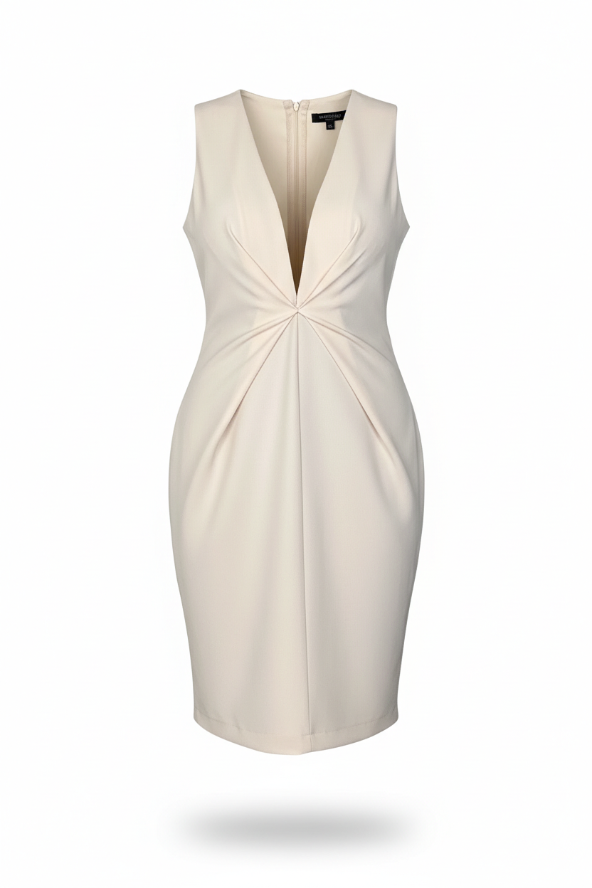 Abito a tubino scollo a V, smanicato con nodo frontale