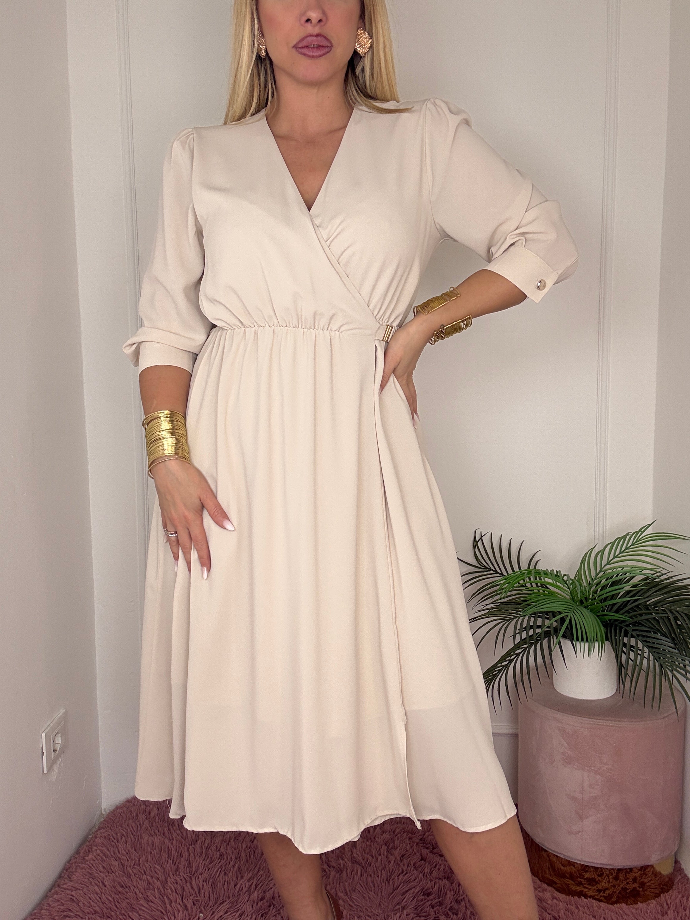 Abito sabbia a portafoglio, manica lunga con bottoncino.