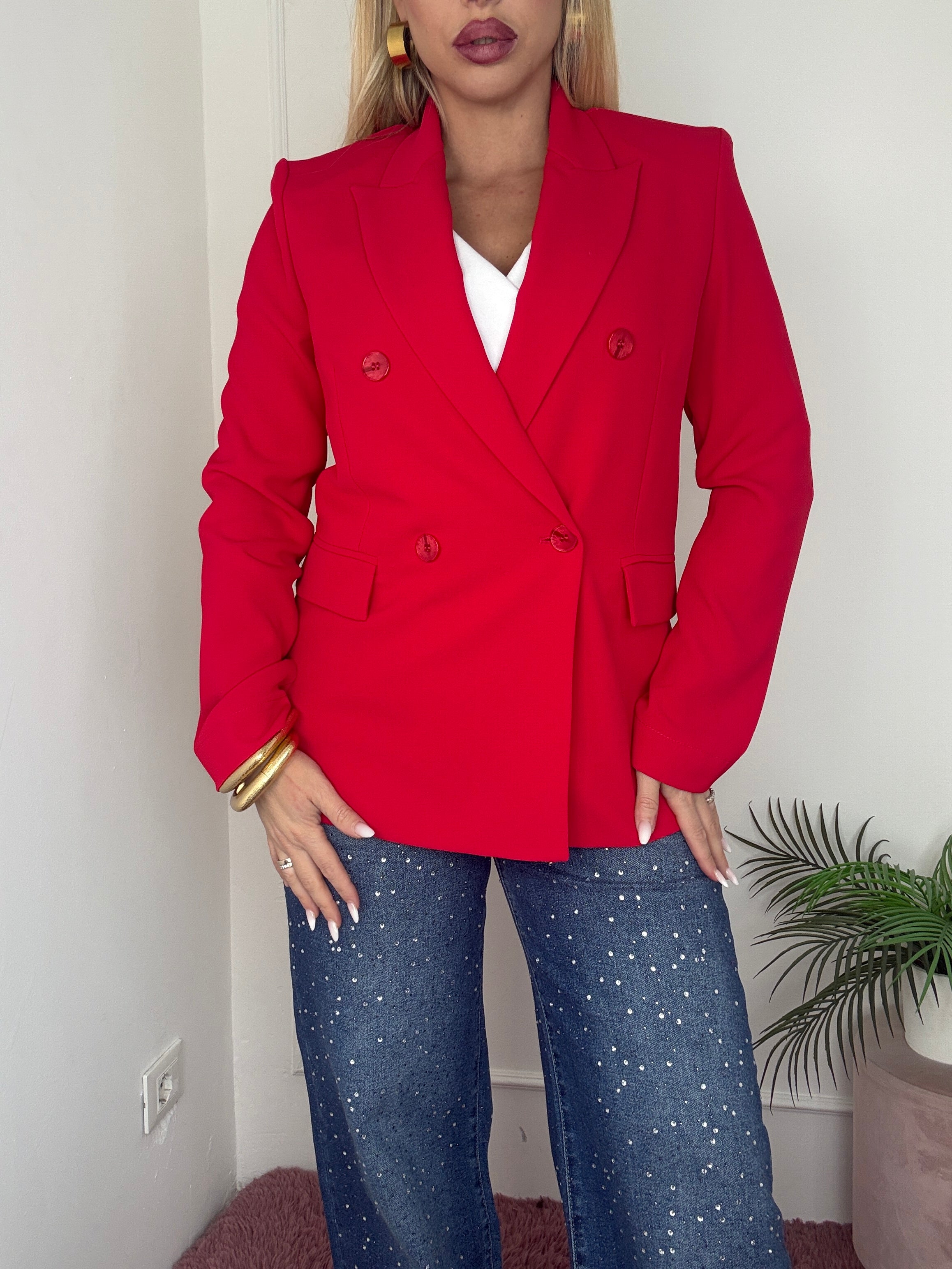 Giacca doppio petto fluida con spallinee tasche estetiche.