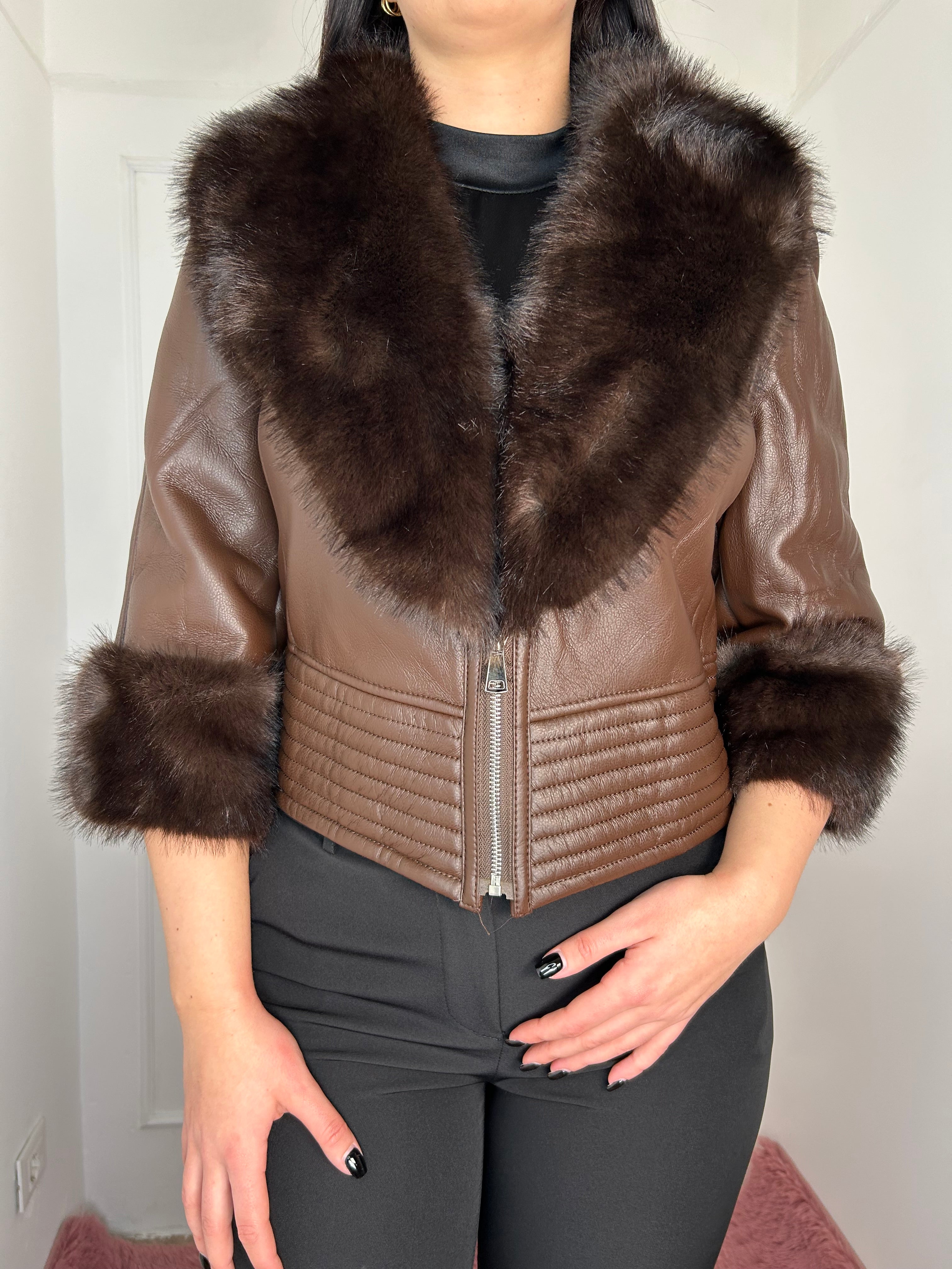 Giacca in ecopelle con pelliccia sul collo e sull’orlo delle maniche. Pelliccia interna Composizione: Pelliccia: 100% acrilico, Tessuto: 100% poliestere