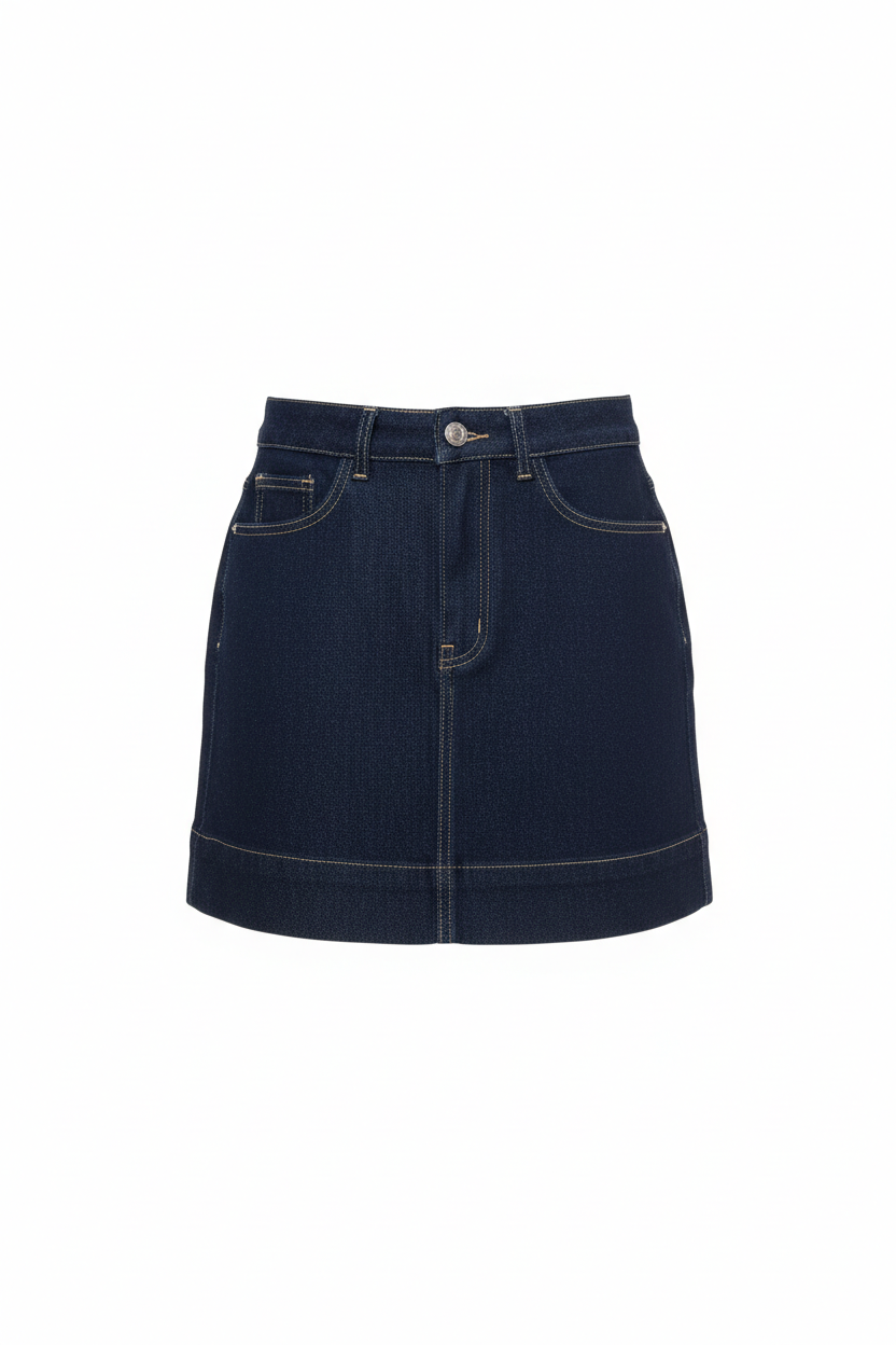 Gonna in jeans morbido elasticizzato con risvoltone, con tasche posteriori