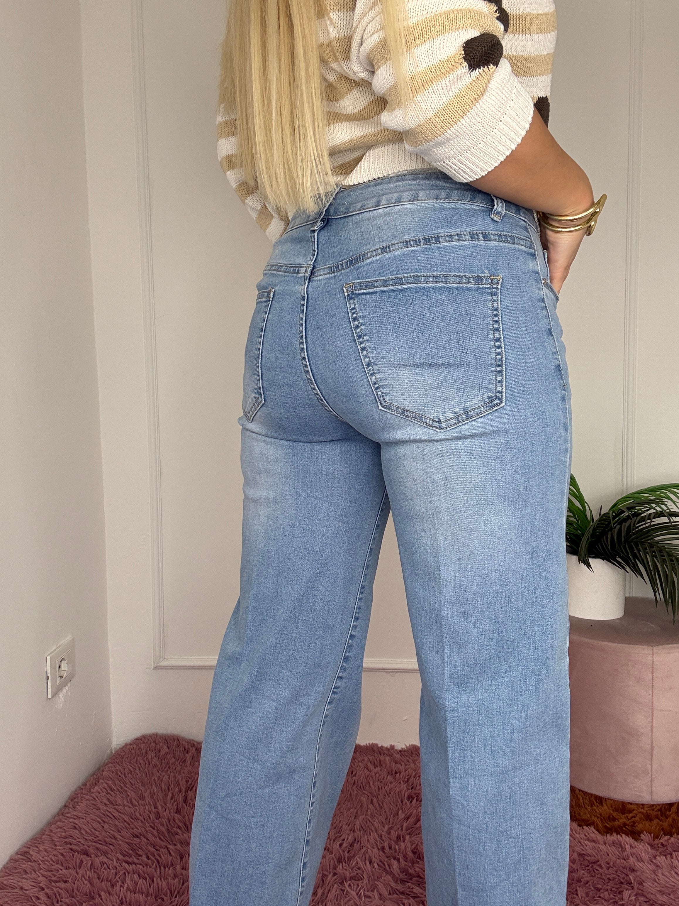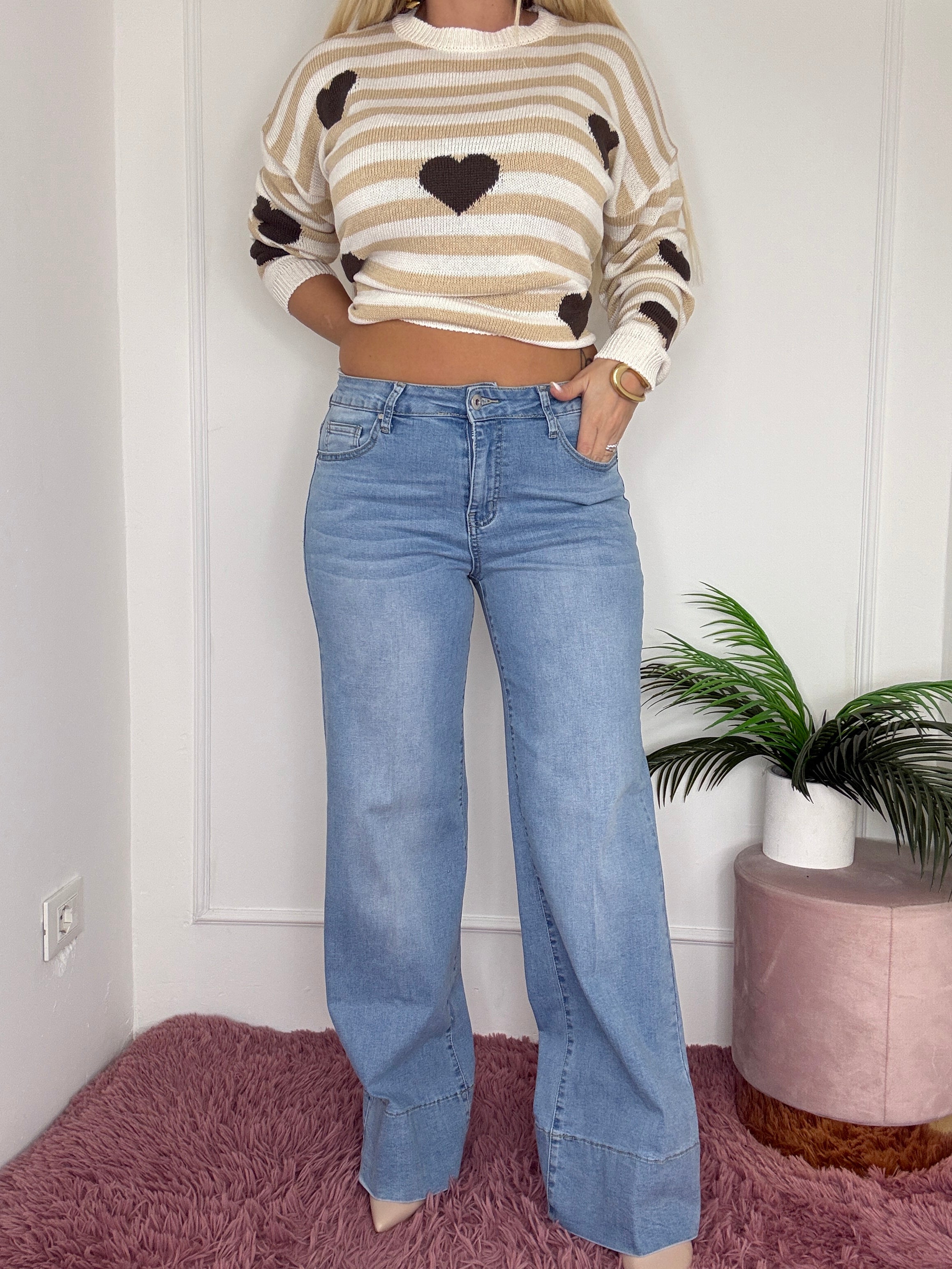 jeans a palazzo, con risvolto
