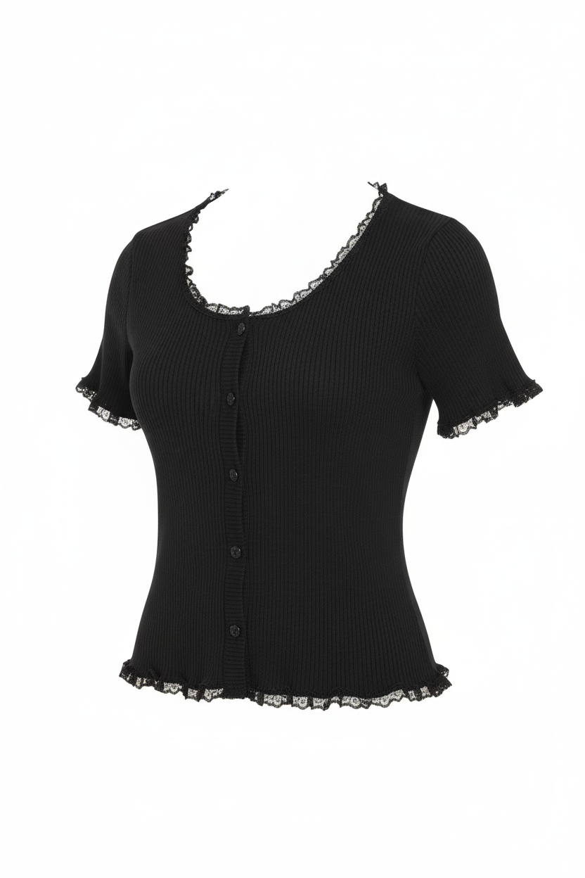 Maglia crop con dettagli in pizzo