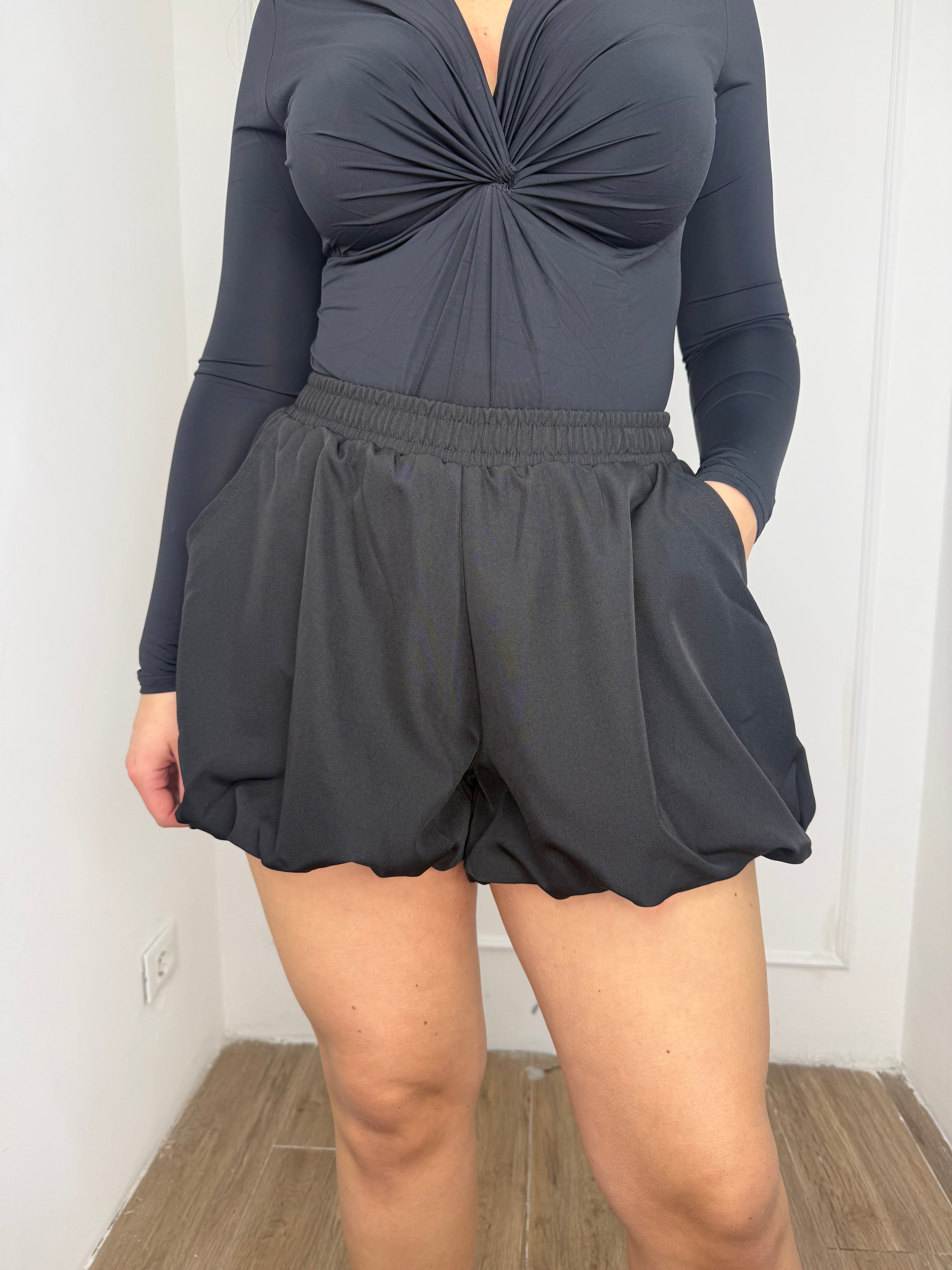 Pantaloncino effetto balloon, elastico in vita e tasche integrate Composizione:65% viscosa 33% poliestere 32% elastan