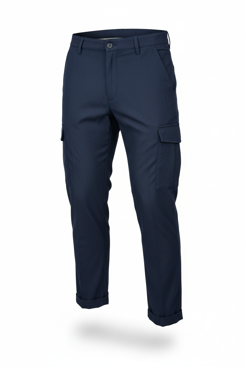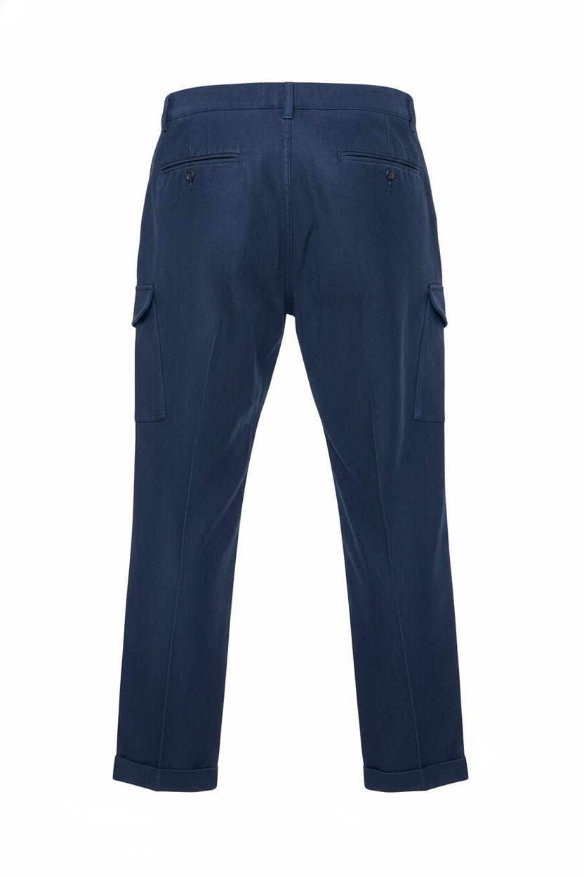 Cargo elasticizzato con risvoltino, tasche laterali, bottone centrale e cerniera. Finte tasche posteriori  Composizione: Lana cotta, poliestere, viscosa